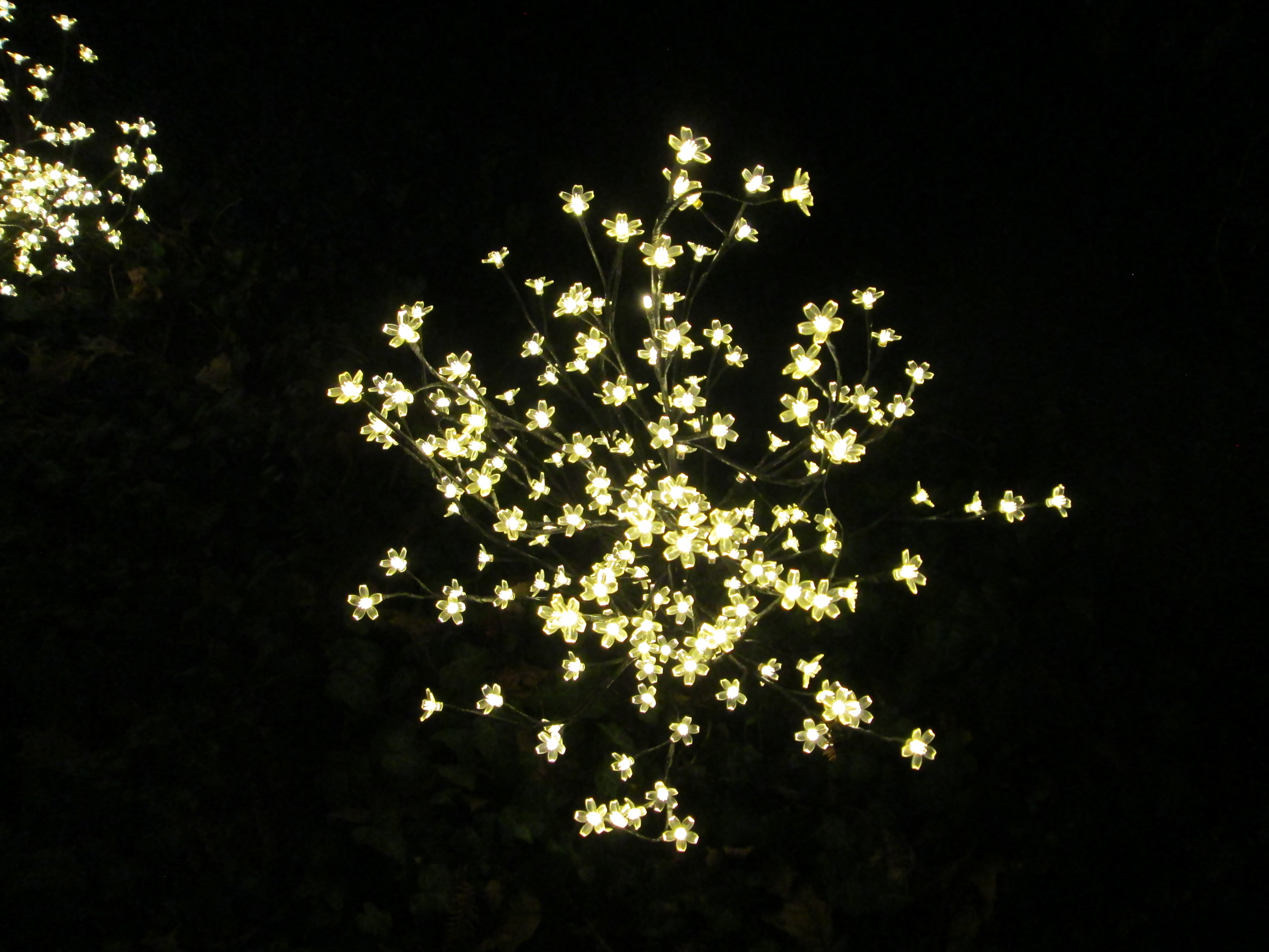 As you walk around, the whole property is dark. Acres and acres of pitch black. There are no street lamps to guide you. All you have are the lights adorning the trees and bushes.